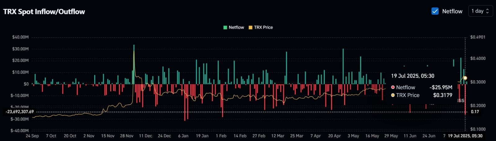 Such an outflow of TRX from exchanges hints at potential accumulation and could reduce selling pressure.