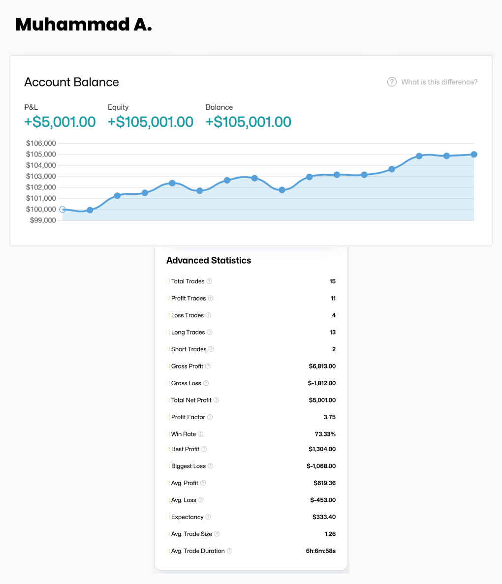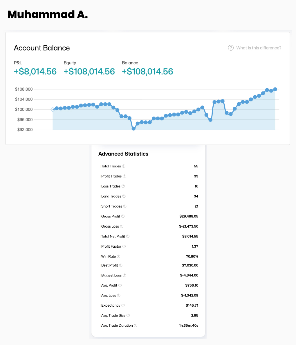 We spoke with Muhammad about his trading plan, insights, and lessons gained while trading in the markets and our platform as a funded trader.