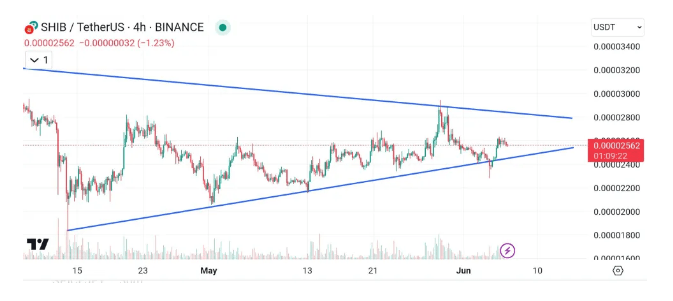 At the time of writing, SHIB is trading at $0.00002392 and is down by 5.35% in the past 24 hours. As mentioned earlier, the recent price movement resembles that of a triangular formation on the price chart. Currently, SHIB is testing the lower end of the formation and could continue to decline until it reaches the support at $0.000023. A bullish reversal is likely to occur at this point, and the meme coin could kickstart a move to the upper end of the triangle at $0.000028.