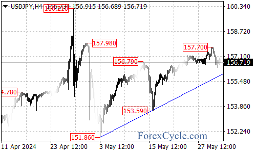 The key levels to watch in the USDJPY are the rising 4-hour trendline support, the 157.20 and 158.00 resistance levels, along with the 159.00 upside target and the 154.50 support area.