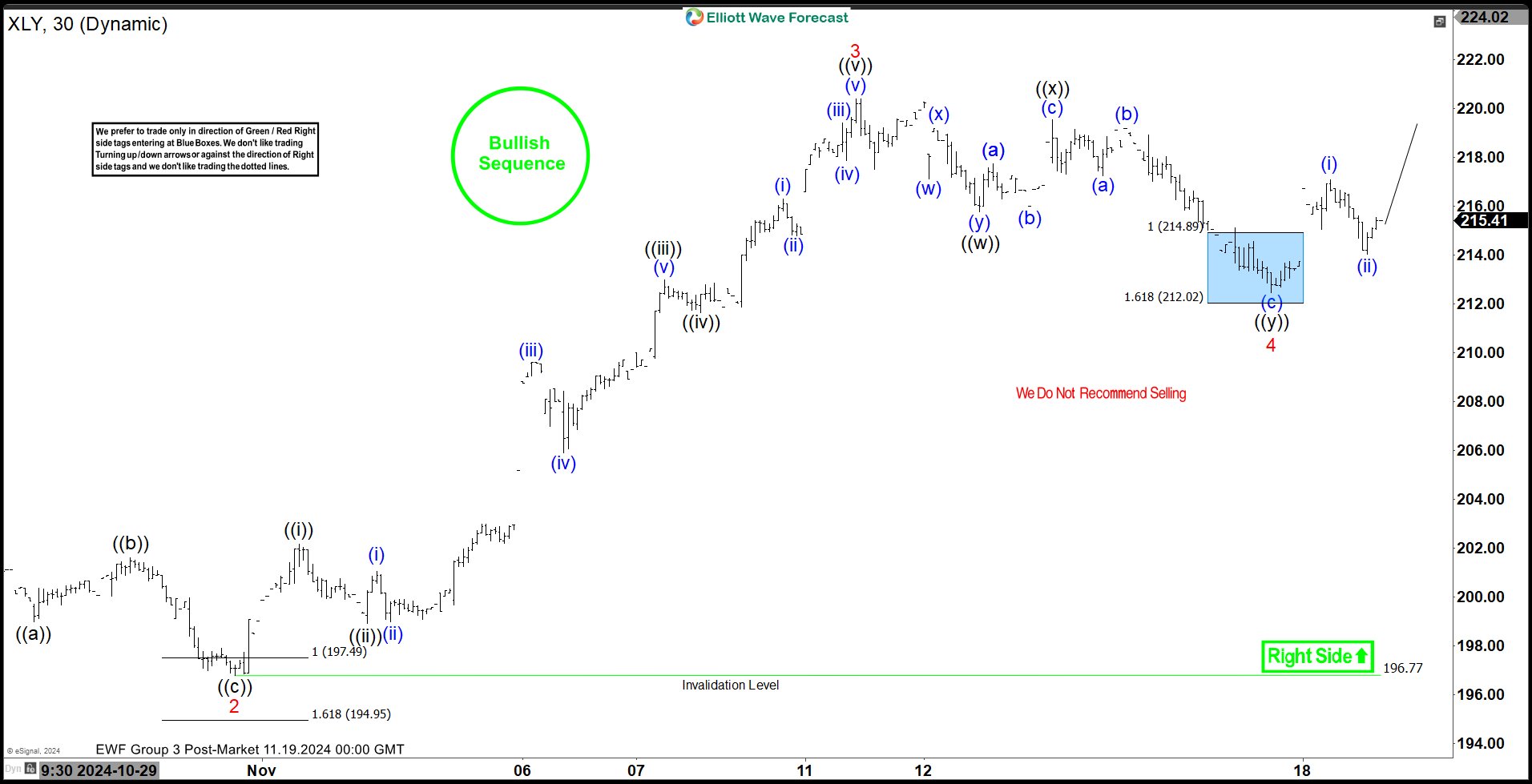 XLY Latest 1-Hour Elliott Wave Chart From 11.19.2024