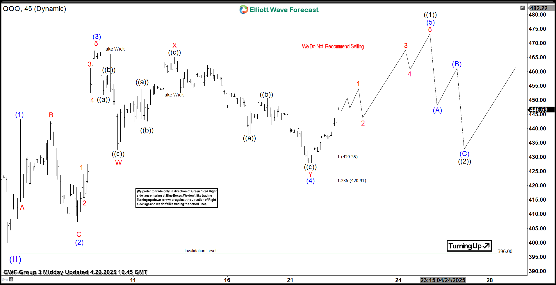 QQQ Elliott Wave 1 Hour Chart 04.21.2025