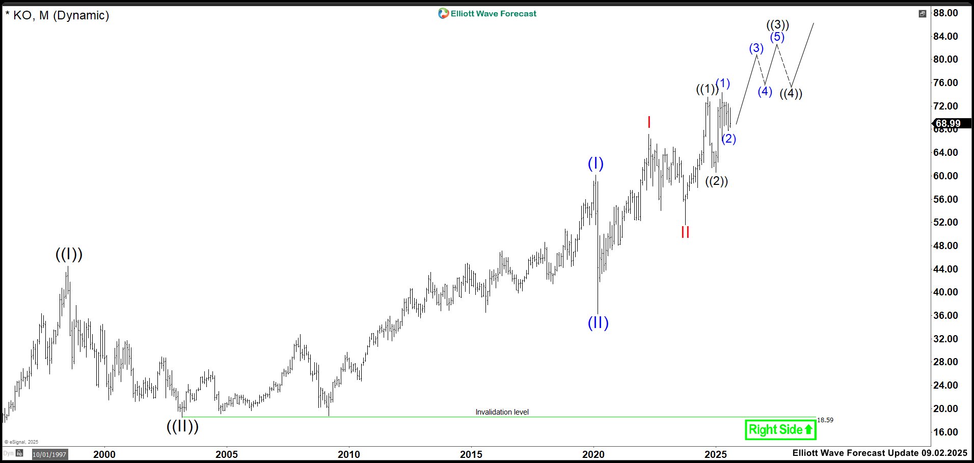 Elliott Wave Outlook Impulse: KO Montly Chart September 2025