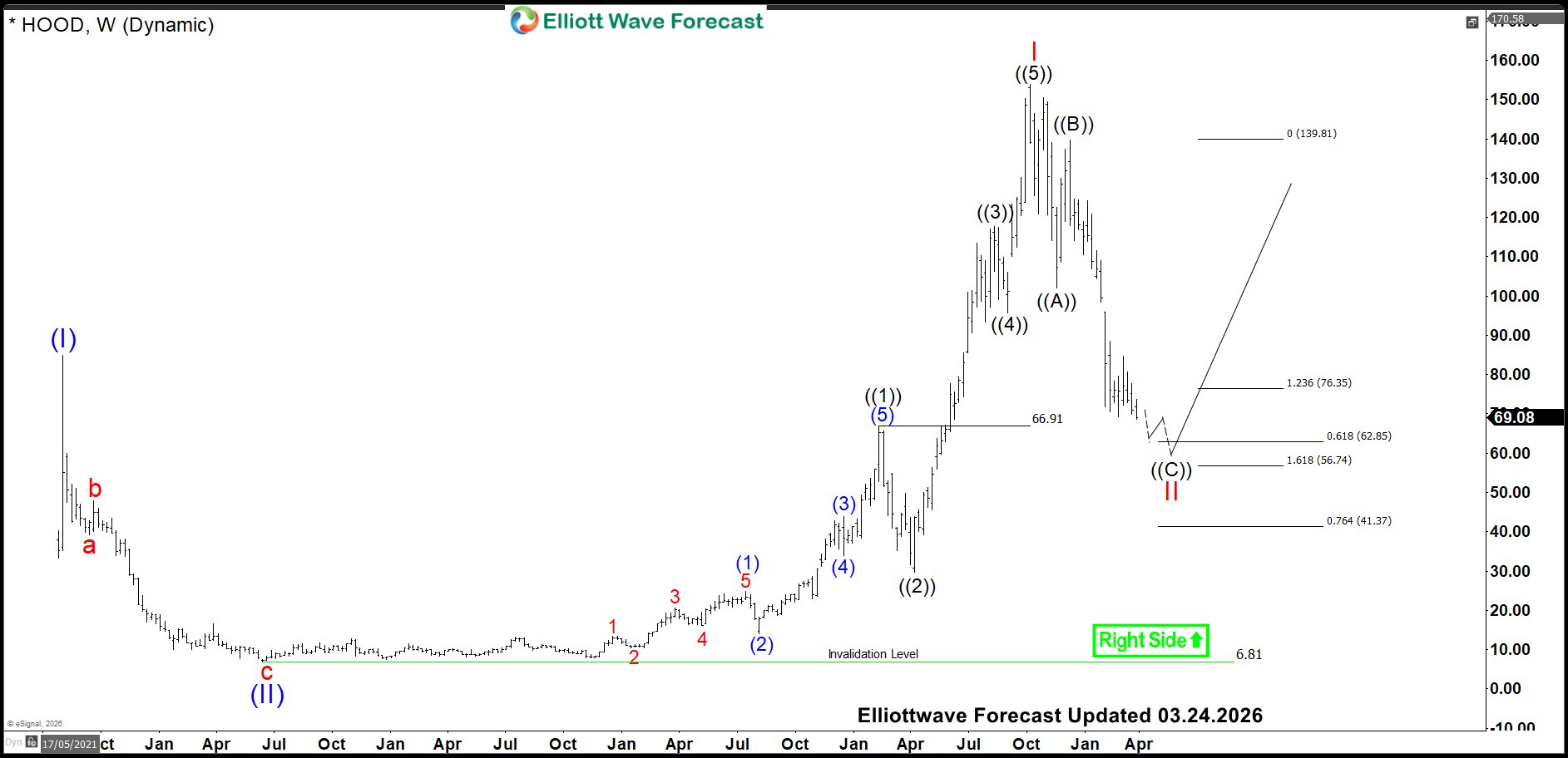 HOOD: Weekly Elliott Wave Analysis: Wave II of ( III ) Pull Back in Progress