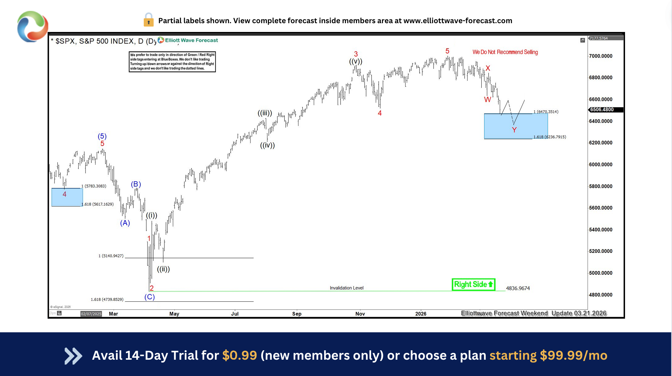 Weeks ago, we outlined a projection that the market would decline into a predefined Blue Box area 6470.3514 – 6236.7915 a high‑probability support area identified through measured extensions and corrective structures during our live session. This was not a random forecast, but the result of a disciplined application of Elliott Wave analysis, specifically the unfolding WXY structure since January 28, 2026, combined with Fibonacci relationships and historical price behavior