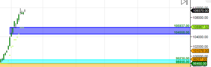 MCX GOLD  Supply Demand Chart : Demand in range of  105937-106000 , Supply in range of 109656-109700