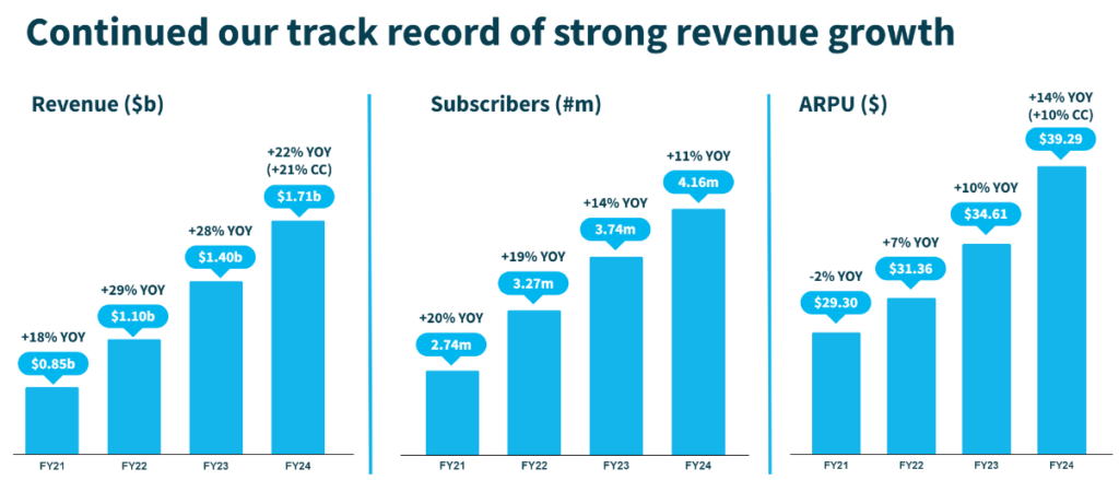 That number was slightly lower than their 2023 growth of 14% YoY, but the difference was more than covered by the company’s increase in customer value.