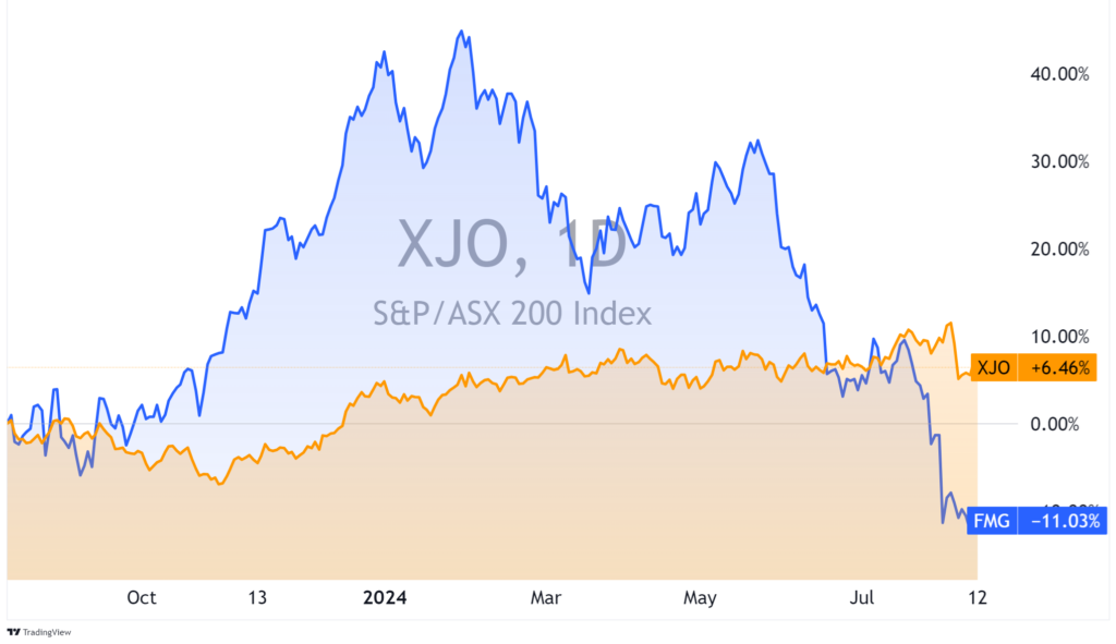 Fortescue’s share price has taken a hit recently, down -16.8% in the past month as the company sheds 700 workers and faces production setbacks in iron ore.