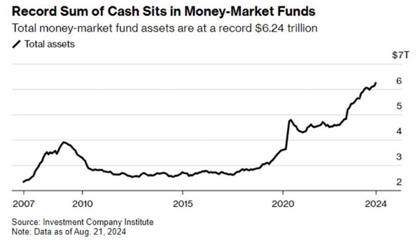 Money market funds are currently sitting on a record amount of money. US$6.24 trillion dollars to be exact.