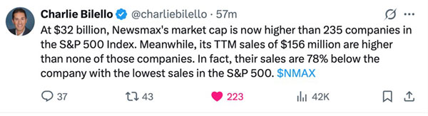 1. Newsmax skyrockets 2000% after its IPO.