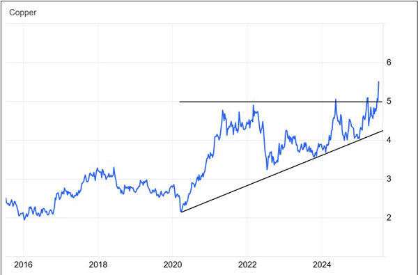 This week’s massive 10% move in the futures market sent copper prices on the New York COMEX into a technical breakout: