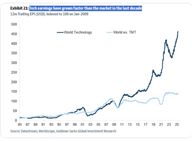 One worry on that front is that a recent chart reveals all the earnings growth driving US markets is only coming from the “Magnificent Seven”.