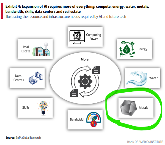 The ~US$1 trillion in U.S. AI infrastructure investment projected by 2029 will demand enormous quantities of copper, lithium, rare earth elements, and other critical materials.