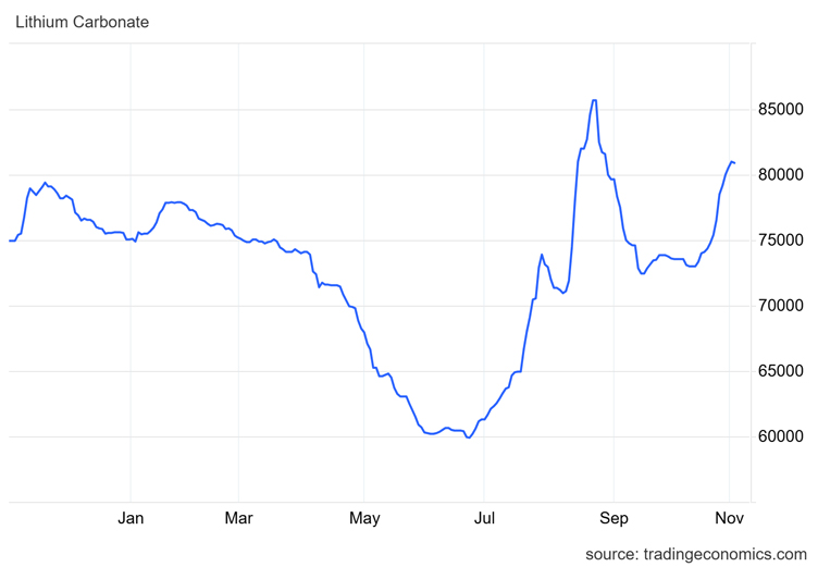 That lithium price edged up again too: