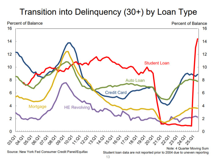 Then we have student loan debt, which is again surging after a brief period of respite under the last administration.