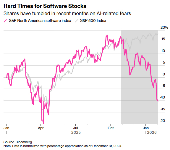 There is also fear that private credit has plenty of exposure to software companies, so the selling is spreading to them as well.