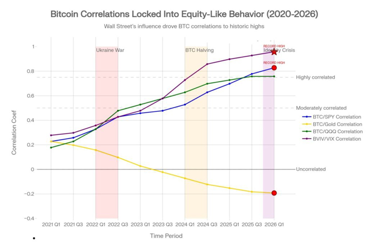 That correlation trend says more about the structure of global liquidity than about Bitcoin itself.