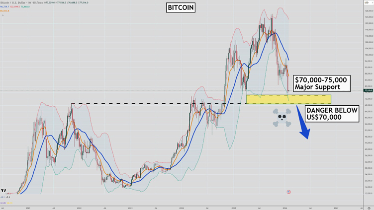 Bitcoin was hovering around US$62,000 at time of writing. Levels not seen since Trump won the presidency in 2024.