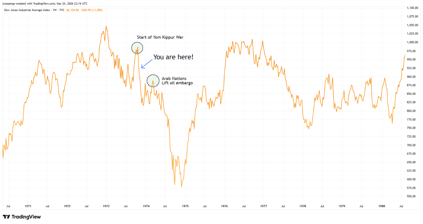 But the real stock market crash didn’t take place until July 1974, about 8 months AFTER the start of the conflict.