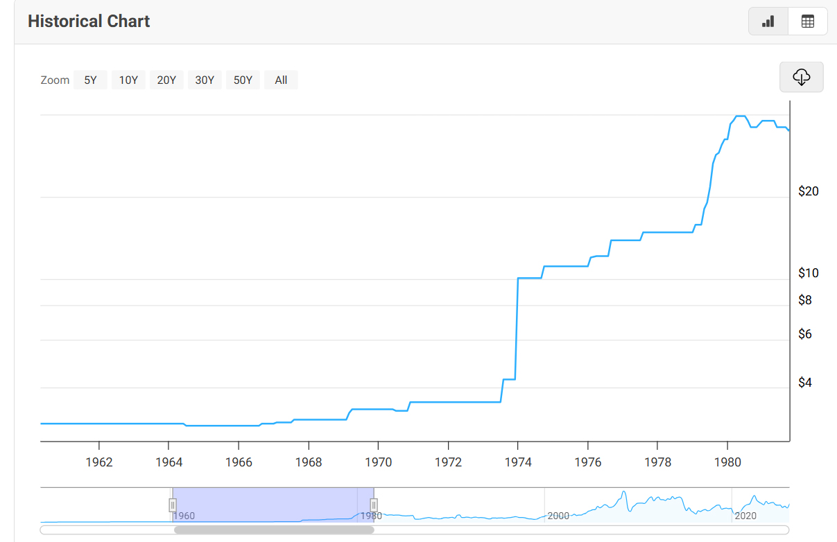 And by the end of the 1970’s, oil was trading above $30 per barrel.