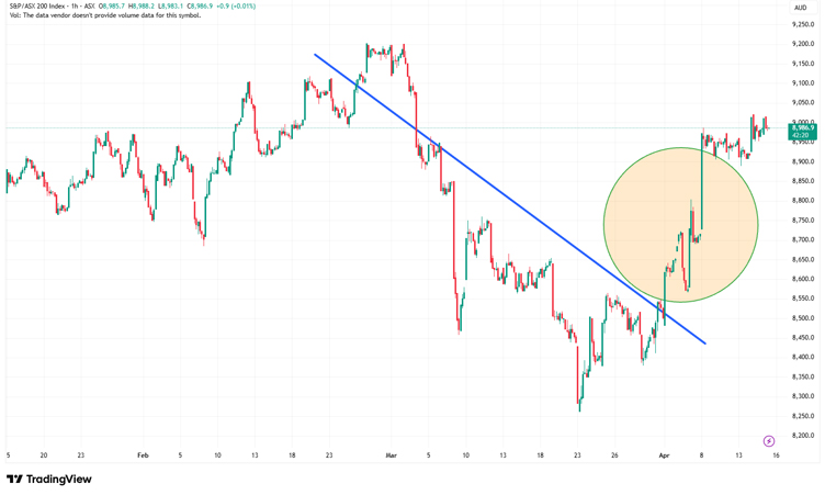 The ASX 200 [XJO] has bounced aggressively in the past week of trading on the three-month chart.