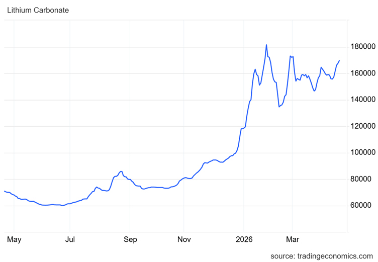 Spot battery-grade lithium carbonate ripped from around US$13,400 per tonne in early December to over US$26,000 by late January. And the lithium price is having another crack (price in CNY):