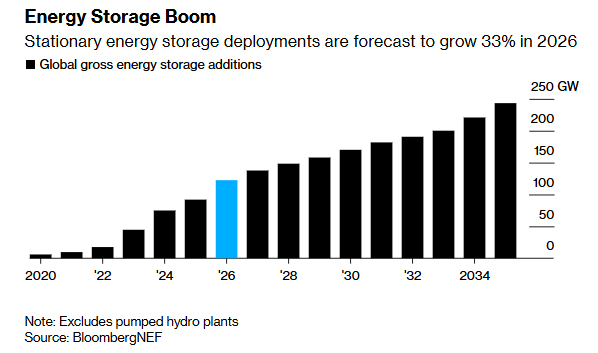 BloombergNEF expected global storage installations to jump about a third in 2026. With fuel disruptions sticking around, that number only goes up.