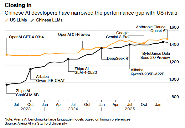 A chart that shows China’s AI nipping at the heels of Anthropic.