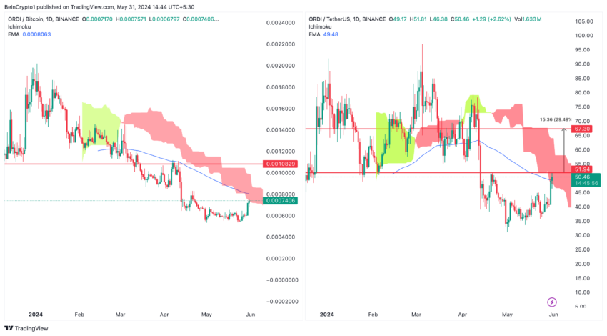 ORDI/USDT vs ORDI/BTC (1D). Source: TradingView