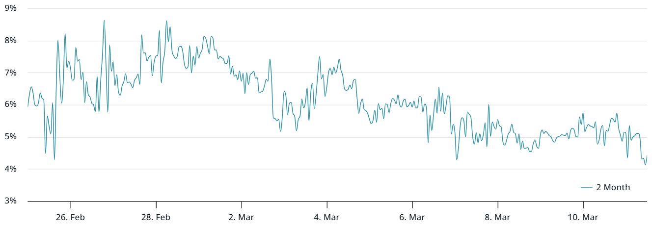 The Bitcoin derivatives market remains stable, as the current annualized premium on futures stands at 4.5%, despite a 19% price drop between March 2 and 11.