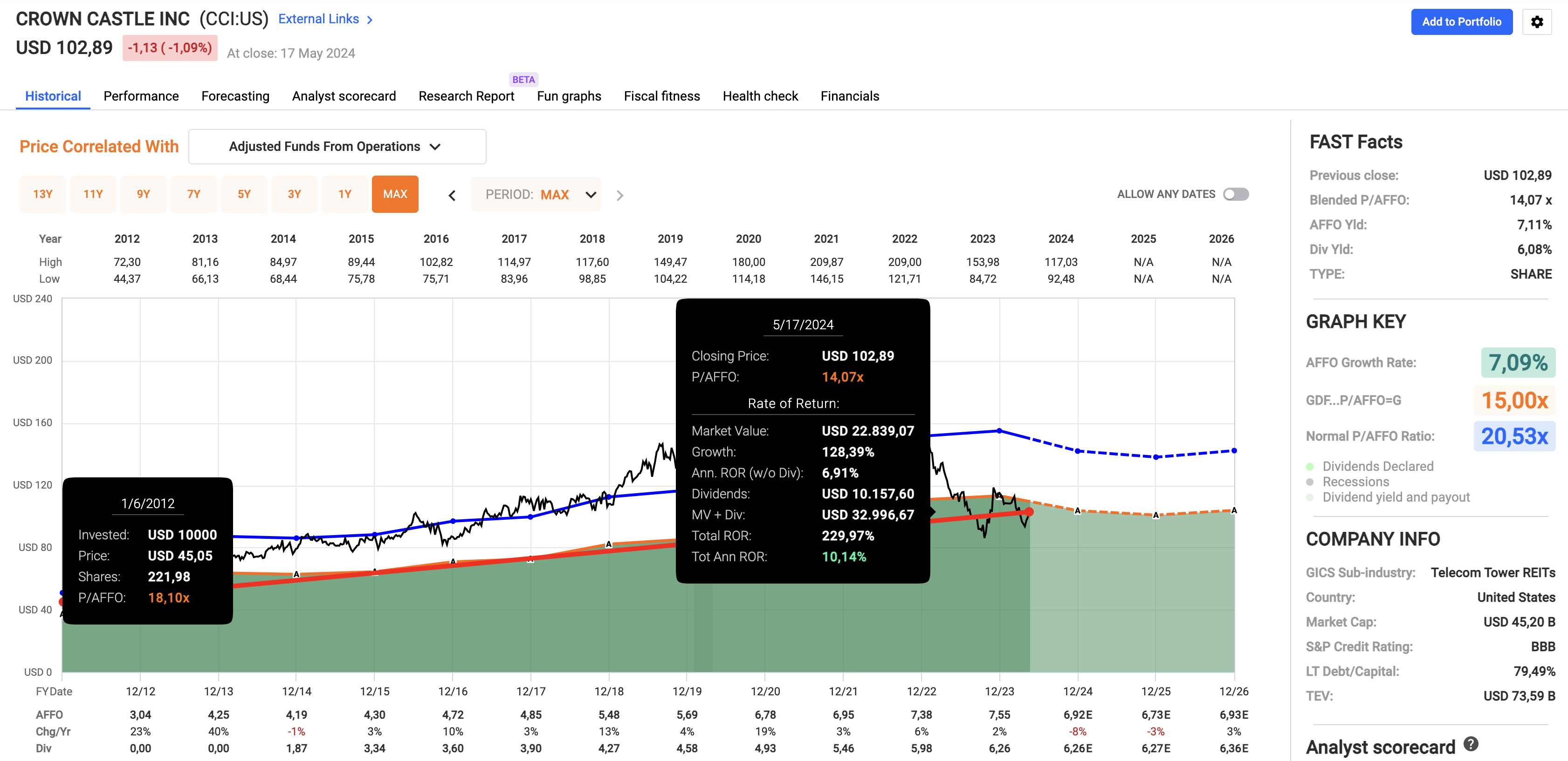 Long-Term Value: Despite recent setbacks, CCI has historically delivered over 10% annual returns since its 2012 IPO.