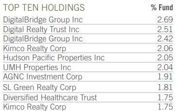 PFFR does provide diversified exposure to its market niche, with investments in over 100 securities, and with the top ten of these accounting for only 20% of its portfolio. It remains a niche, undiversified fund as a whole, however.