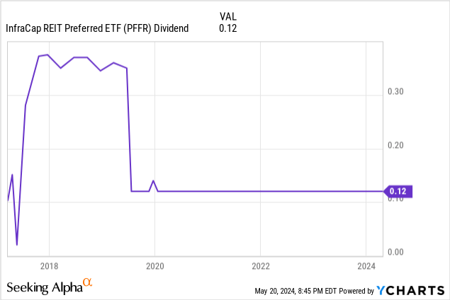 PFFR’s dividends have remained stable since early 2020, a bit after the fund shifted from quarterly to monthly dividend payments. Dividends fluctuated before, with no clear trendline.
