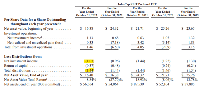 Some REITs are able to classify their distributions as ROC due to favorable tax regulations, so the figures above understate PFFR’s ‘actual’ income. By my calculations, and from the fund’s holdings, the fund sports a 92% coverage ratio, a much more sustainable figure.