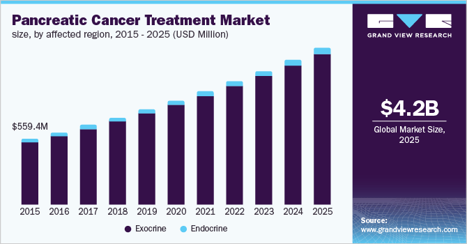 According to a 2019 market research report by Grand View Research, the global market for pancreatic cancer treatment was an estimated $560 million in 2015 and is forecasted to reach $4.2 billion by 2025.
