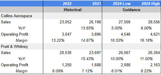Trying to put the guidance in actual numbers suggests that both Collins Aerospace and Pratt & Whitney are expected to experience some operating margin expansion as well.