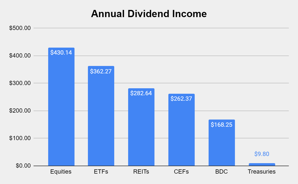 Here’s how much dividend income is generated per investment basket: