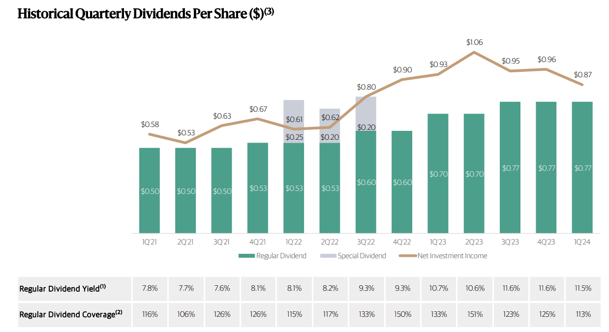 - There is still more room for dividend growth, as the dividend payments only account for 78.39% of its Net Investment Income (NII) per share.