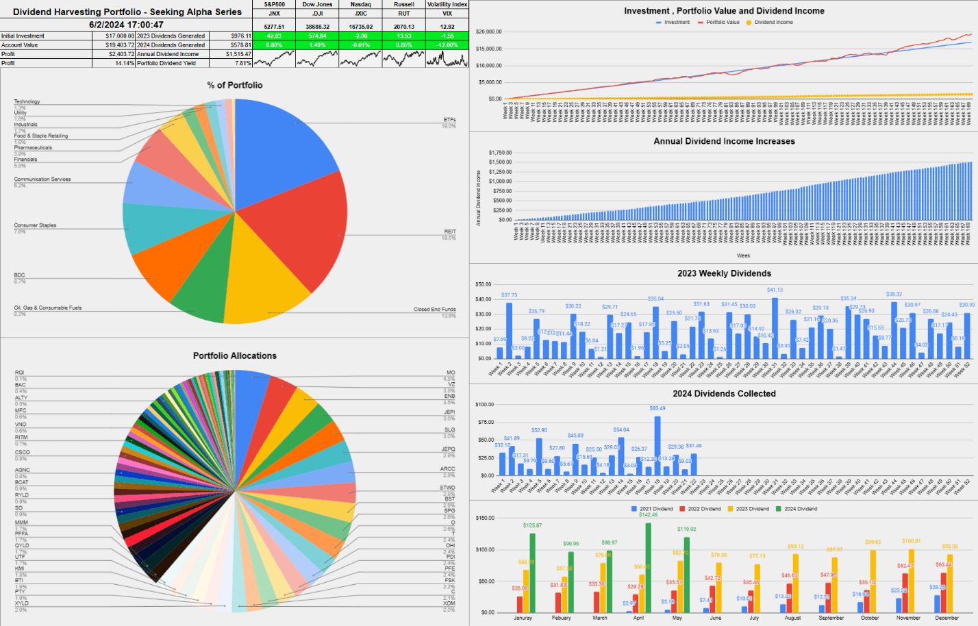 Dividend Harvesting Portfolio Week 170: $17,000 Allocated, $1,515.47 Projected Dividends