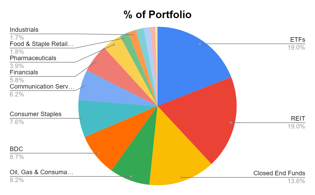 The Dividend Harvesting portfolio is appreciating in value, and the percentage of the portfolio that REITs represents continues to decline. This is music to my ears because I want to add to my position in Realty Income, VICI Properties, and CTO Realty Growth (CTO) over the next several weeks. I will probably wait until the Fed meeting to see if Fed Chair Powell spooks the market with a higher for longer narrative. As of now, I am not really restricted in where I allocate capital, as ETFs and REITs are hovering around the 19% mark. I like the balance the portfolio has and will try my best to even things out further.