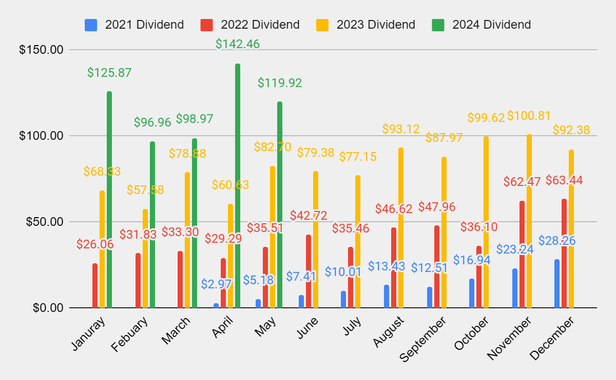 In week 22 of 2024, I generated $31.46 in dividend income. On average, I have collected $26.31 in dividend income this year compared to $18.77 in 2023. Compared to last year, my dividend income this week grew by 44.44%, and as time progresses, I expect this to continue expanding. I think that by the time 2024 has concluded, I may have generated over $100 in a single week of dividend income. All of the income that is generated gets reinvested, and it will be interesting to see how the rest of this year unfolds and what the first 22 weeks of 2025 looks like in comparison to 2024.