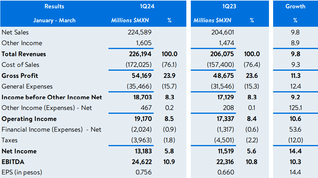 Q1 revenue growth was a strong 9.8% YoY, which is higher than any individual quarter through FY23. To me, that immediately signifies some favorable tailwinds developing; or, at the very least, it tells me that the near-term headwinds aren’t as forceful as they were two quarters ago when I last covered Walmex.