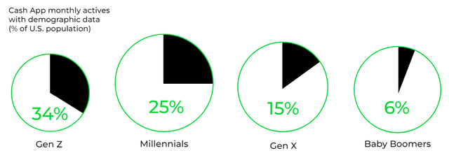 The Cash App still has considerable growth potential, as Block estimates that the company penetrates only about 20% of the market. Gen Z and Millennials, which are the most prolific users of the Cash App represent a huge growth opportunity for Block in the coming years and the company’s Cash App Card could be the product that reels them in.
