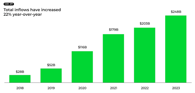 - Growth in money inflows could make Cash App a very valid alternative to other payment services, including those offered by PayPal.