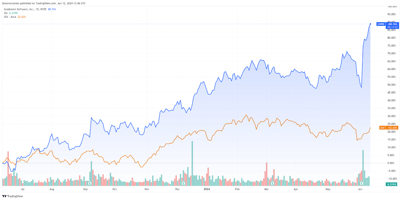 So, by comparison, GWRE is presently being valued by the market at more than double the broader Meritech Capital SaaS Index, as of June 7, 2024.