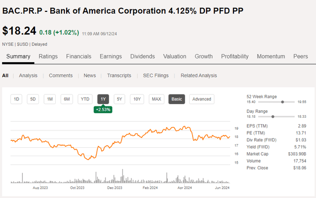 This means I’m looking at the Series PP as a perpetual preferred share and the current yield is approximately 5.65% based on the most recent share price of $18.24.