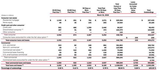 I have been keeping an eye on the preferred shares issued by Bank of America (NYSE:BAC) which generally offer a yield of around 6%. As I wanted to add duration to my portfolio, I will be focusing on a preferred share issue with a low preferred dividend coupon as that reduces the call risk. In this article I will zoom in on the bank’s loan portfolio where the total amount of loans past due remains pretty low, and where the exposure to commercial real estate represents just a single digit percentage of the loan portfolio.
