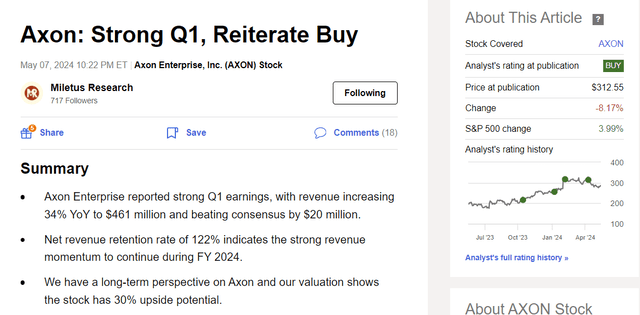 Axon: Draft One AI Is A Game Changer (NASDAQ:AXON)