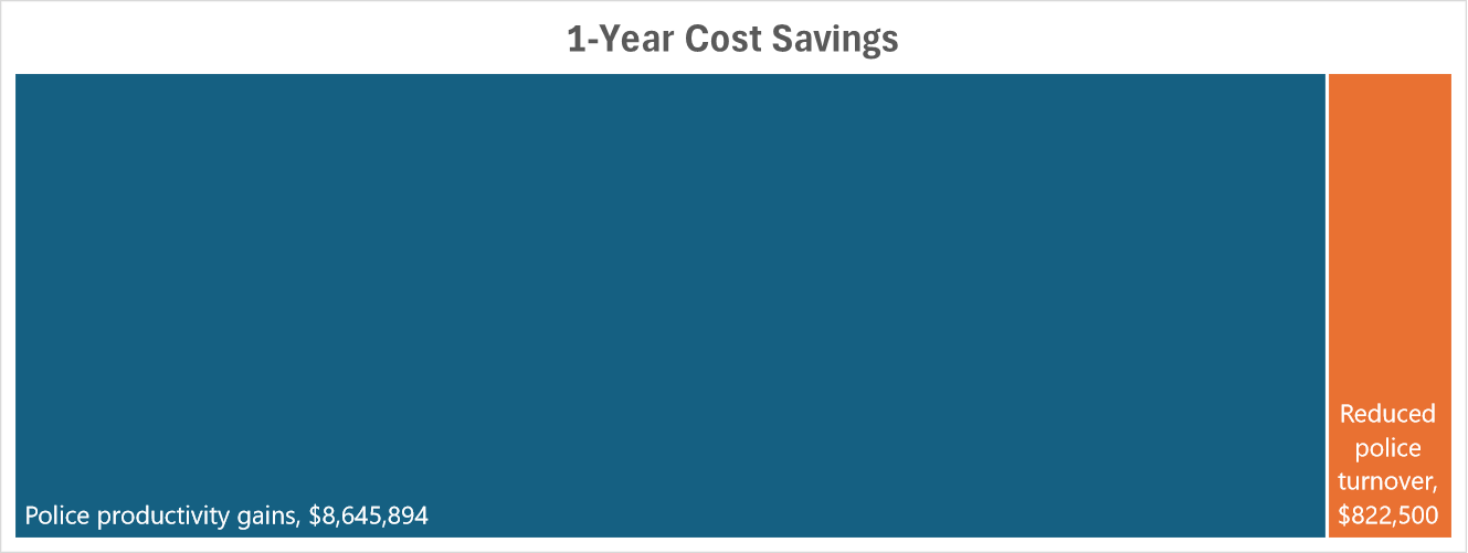 Our business value analysis of the Fort Collins pilot shows that, over a one-year period, a fully deployed police station with 235 sworn officers can expect the following benefits: