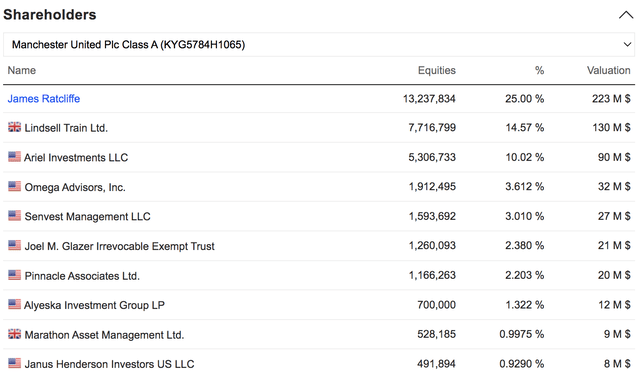 MANU Largest Shareholders (Market Screener)